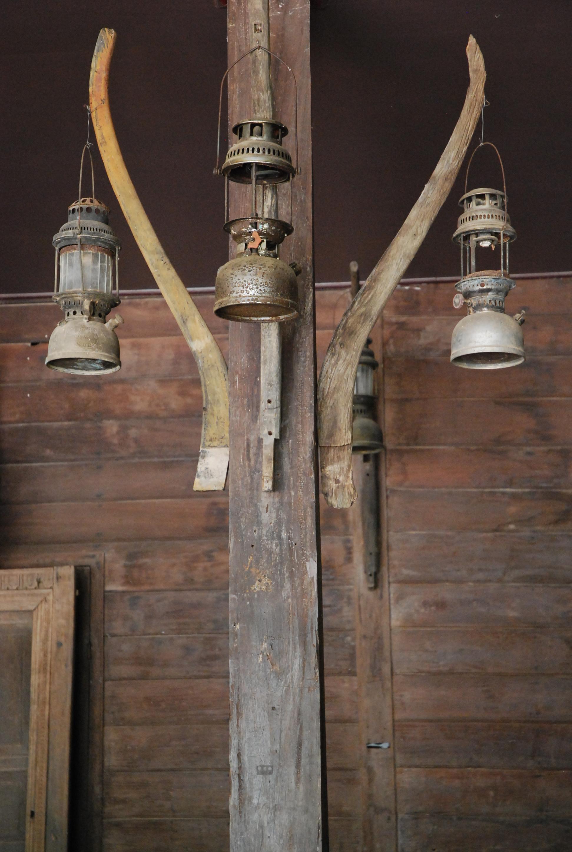 คำอธิบาย : ตะเกียงเจ้าพายุ เครื่องใช้สำหรับให้แสงสว่างในเวลากลางคืน นิยมใช้กันมากก่อนที่จะมีไฟฟ้าใช้อย่างทุกวันนี้ ตะเกียงเหล่านี้ถูกรวบรวมและจัดแสดงไว้ที่พิพิธภัณฑ์เมืองเกษมสีมา วัดเกษมสำราญ อำเภอตระการพืชผล จังหวัดอุบลราชธานี เพื่อให้ประชาชนได้ศึกษาเรียนรู้ |