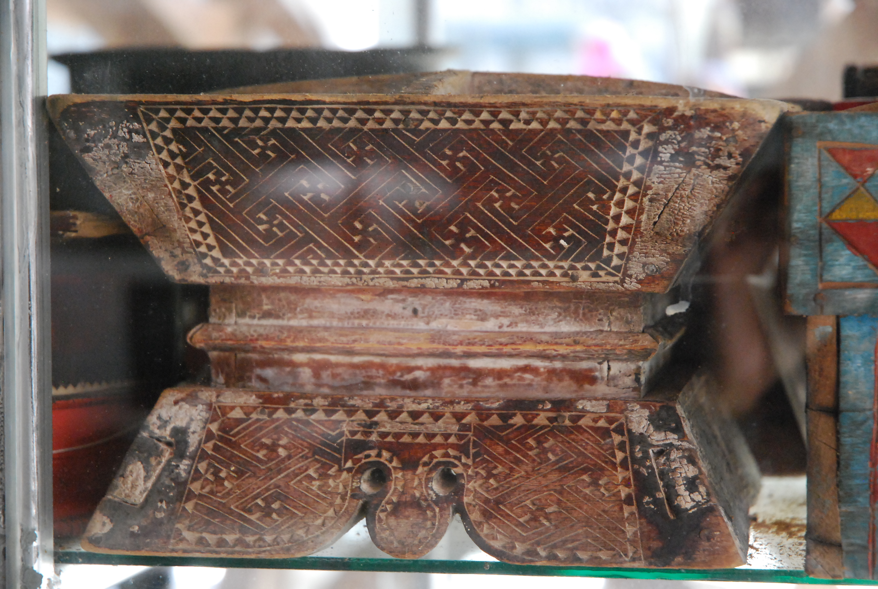 คำอธิบาย : เชี่ยนหมาก เป็นเครื่องใช้สำหรับจัดเก็บอุปกรณ์ในการเคี้ยวหมาก อันประกอบด้วย มีดสะนาก ตะบันหมาก เต้าปูน มีดผ่าหมาก ใบพลู หมาก ยาเส้น นิยมทำมาจากไม้ มีการแกะสลักลวดลายที่สวยงามที่ฐาน บ้างก็เรียกว่า ขันหมาก เชี่ยนหมากนี่้เก็บรวบรวมและจัดแสดงไว้ที่พิพิธภัณฑ์พื้นบ้านวัดศรีสุพนอาราม อำเภอม่วงสามสิบ จังหวัดอุบลราชธานี |