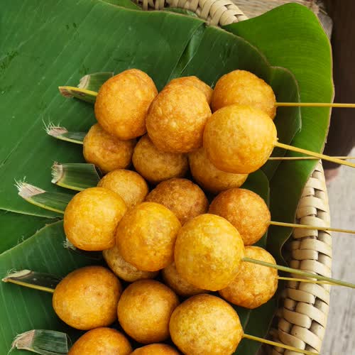 | คำอธิบาย : ไปรกะซัง คือขนมโบราณซึ่งเป็นภูมิปัญญาของชาวกูย จ.ศรีสะเกษ มีส่วนผสมหลักเป็นแป้งเหนียวและมีไส้ข้างในซึ่งทำจากการนำมะพร้าวอ่อนมาผัดเข้ากับน้ำตาล หน้าตาของขนมไปรกะซังคล้ายขนมไข่เต่าหรือไข่นกกระทาแต่มีขนาดใหญกว่า และมีความเหนียวและหนากว่าเล็กน้อย |