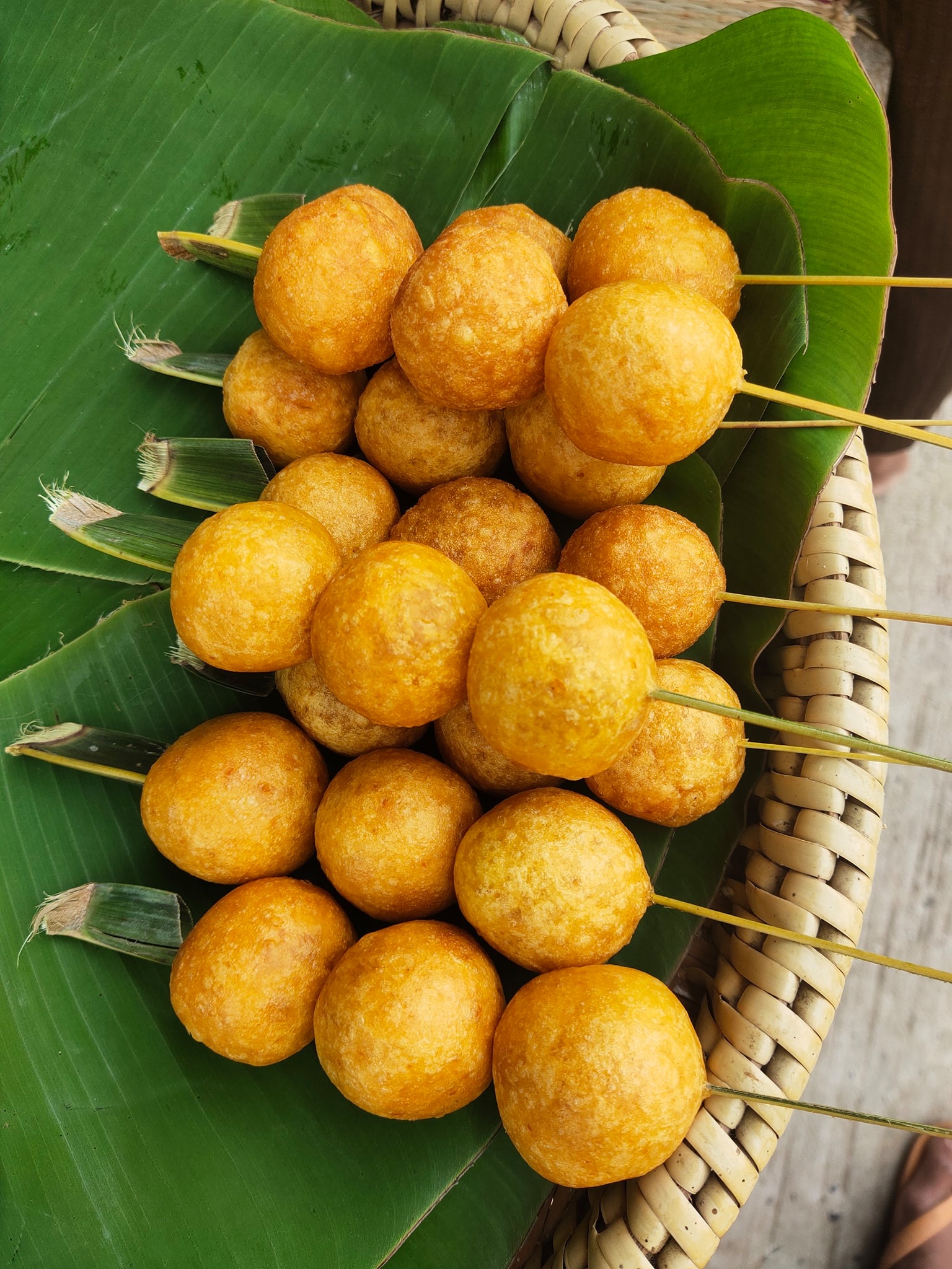 คำอธิบาย : ไปรกะซัง คือขนมโบราณซึ่งเป็นภูมิปัญญาของชาวกูย จ.ศรีสะเกษ มีส่วนผสมหลักเป็นแป้งเหนียวและมีไส้ข้างในซึ่งทำจากการนำมะพร้าวอ่อนมาผัดเข้ากับน้ำตาล หน้าตาของขนมไปรกะซังคล้ายขนมไข่เต่าหรือไข่นกกระทาแต่มีขนาดใหญกว่า และมีความเหนียวและหนากว่าเล็กน้อย |