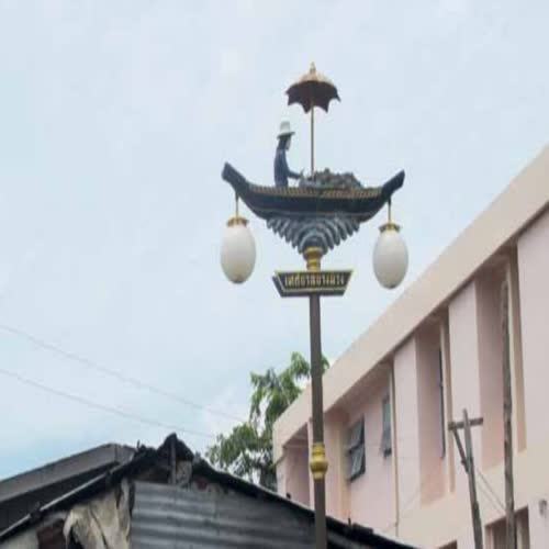 | คำอธิบาย : เสาไฟฟ้าย่านริมคลองแม่น้ำอ้อม เทศบาลตำบลบ้านบางม่วง เป็นรูปแม่ค้าพายเรือขายมะม่วง ตำบลบางม่วง อำเภอบางใหญ่ เป็นแหล่งปลูกมะม่วงมีชื่อของจังหวัดนนทบุรี เทศบาลตำบลบ้านบางม่วงจึงได้ตกแต่งเสาไฟฟ้าย่านริมคลองแม่น้ำอ้อม หน้าเทศบาลบ้านบางม่วง เป็นรูปแม่ค้าพายเรือขายมะม่วง |