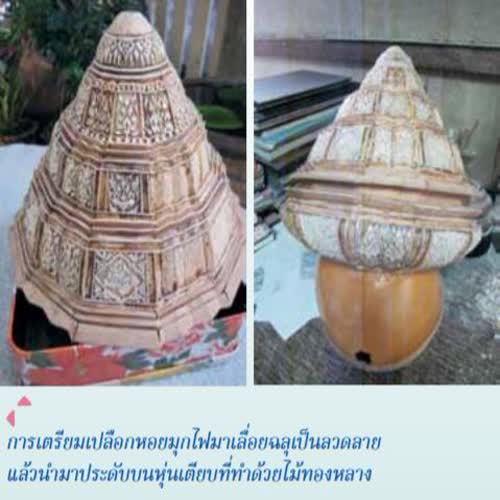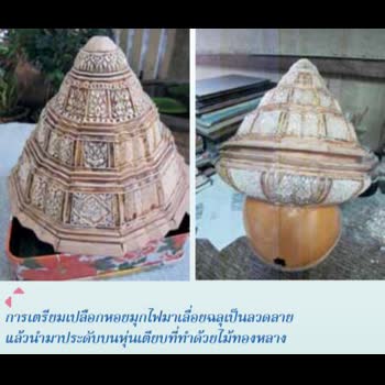 | คำอธิบาย : การทำตะลุ่ม และพานแว่นฟ้า หัตถกรรมของอำเภอบางใหญ่ ที่นำชื่อเสียงสู่เมืองนนทบุรีคนเมืองนนทบุรีเป็นผู้มีฝีมือเชิงช่างและสามารถสร้างผลงานหัตถกรรมที่นำชื่อเสียงมาสู่เมืองนนทบุรี มาแต่โบราณกาล ช่างฝีมือผู้เป็นภูมิปัญญาเหล่านั้น สามารถนำเอาวัสดุสิ่งของที่มีอยู่ในชุมชนมาสรรค์สร้างให้เกิดผลงานหัตถกรรมที่สนองความต้องการของผู้คนทั้งในด้านประโยชน์ใช้สอยในชีวิตประจำวัน รวมถึงการนำไปใช้ในฐานะที่เป็นเครื่องใช้ประกอบพิธีกรรม หรือในสังคมชั้นสูง สามารถสร้างอาชีพให้แก่ผู้สืบสานงานหัตถกรรมเป็นอุตสาหกรรมในครอบครัว และในชุมชนได้ เช่น งานหัตถกรรมการทำตะลุ่ม และพานแว่นฟ้า ชาวสวนในตำบลบางเลน อำเภอบางใหญ่ จังหวัดนนทบุรี แต่เดิมมีอาชีพเสริมนอกจากการทำสวนทุเรียน คือ การทำหุ่นตะลุ่ม หุ่นพานแว่นฟ้า หุ่นโตก หุ่นเตียบ หุ่นเจียด เนื่องจากสิ่งของดังกล่าวทำมาจากไม้ทองหลาง ซึ่งมีอยู่มากมายในสวนทุเรียน ไม้ทองหลางที่นำมาใช้ทำหุ่นภาชนะดังกล่าวข้างต้นได้ ต้องเป็นไม้ทองหลางที่อยู่ส่วนโคนของต้น ต้นทองหลางที่มีอายุมากที่โคนต้นจะแผ่ออกเป็นแผงขนาดใหญ่ ชาวบ้านจะนำเอาเฉพาะไม้ส่วนที่เป็นแผงโคนต้นทองหลางมาใช้ด้วยการมาทำเป็นแผ่นบาง ๆ จากนั้นนำไม้แผ่นบาง ๆ มาประกอบเป็น ตะลุ่ม พานแว่นฟ้า หรือภาชนะอื่น ๆ ขั้นตอนการทำภาชนะเช่นนี้เรียกว่า “การทำหุ่น” หุ่นที่ทำเรียบร้อยแล้วจะนำไปแต่งให้สวยงามด้วยการนำไปลงรักและประดับด้วยมุกหรือกระจกสีประดับเป็นลวดลายต่าง ๆ หรือนำไปลงรักปิดทองหรือเขียนลายทองรดน้ำ จะได้ภาชนะที่สวยงาม |