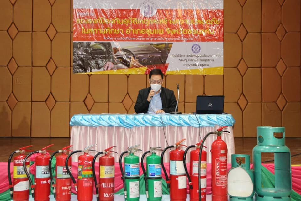 | คำอธิบาย : นายณัฐพล ดีบุญมี ณ ชุมแพ รองนายกเทศมนตรีเมืองชุมแพ ได้รับมอบหมายจาก นายสมเกียรติ ดีบุญมี ณ ชุมแพ นายกเทศมนตรีเมืองชุมแพ เป็นประธานเปิดอบรมโครงการรณรงค์ป้องกันอุบัติเหตุและสร้างความปลอดภัยในสถานศึกษา อำเภอชุมแพ จังหวัดขอนแก่น โครงการนี้มีวัตถุประสงค์เพื่อ 1.ให้ความรู้และวิธีการใช้ถังดับเพลิงเบื้องต้นให้กับครูและนักเรียนภายในเขตเทศบาลเมืองชุมแพ 2.รณรงค์ป้องกันอุบัติเหตุและสร้างความปลอดภัยในสถานศึกษา 3.เพื่อสร้างทัศนคติที่ดีในการร่วมมือป้องกันและระงับอัคคีภัย 4.เพื่อให้ผู้เข้าร่วมอบรมเป็นกำลังสำคัญในการเฝ้าระวังและระงับอัคคีภัย โดยวันนี้ได้ฝึกอบรมที่ โรงเรียนชุมแพศึกษา โดยฝึกภาคทฤษฎี 1 ชั่วโมง และฝึกภาคปัฏิบัติ 2 ชั่วโมง ณ หอประชุมโรงเรียนชุมแพศึกษา สนับสนุนโดยกองทุนหลักประกันสุขภาพเทศบาลเมืองชุมแพ ประชาชนในเขตเทศบาลเมืองชุมแพ สามารถแจ้งเหตุด่วนเหตุร้ายได้ที่ งานป้องกันและบรรเทาสาธารณภัย เทศบาลเมืองชุมแพ โทร. 0 4331 1000 ตลอด 24 ชั่วโมง |