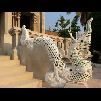 | คำอธิบาย : นาคหน้าบันได หน้าอุโบสถเจดีย์วัดกลางเวียง อ.พร้าว จ.เชียงใหม่ |