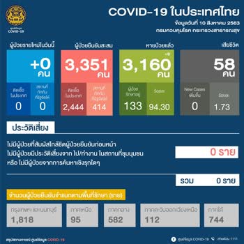 (2563). "COVID-19 ในประเทศไทย ข้อมูลวันที่ 10 สิงหาคม 2563".