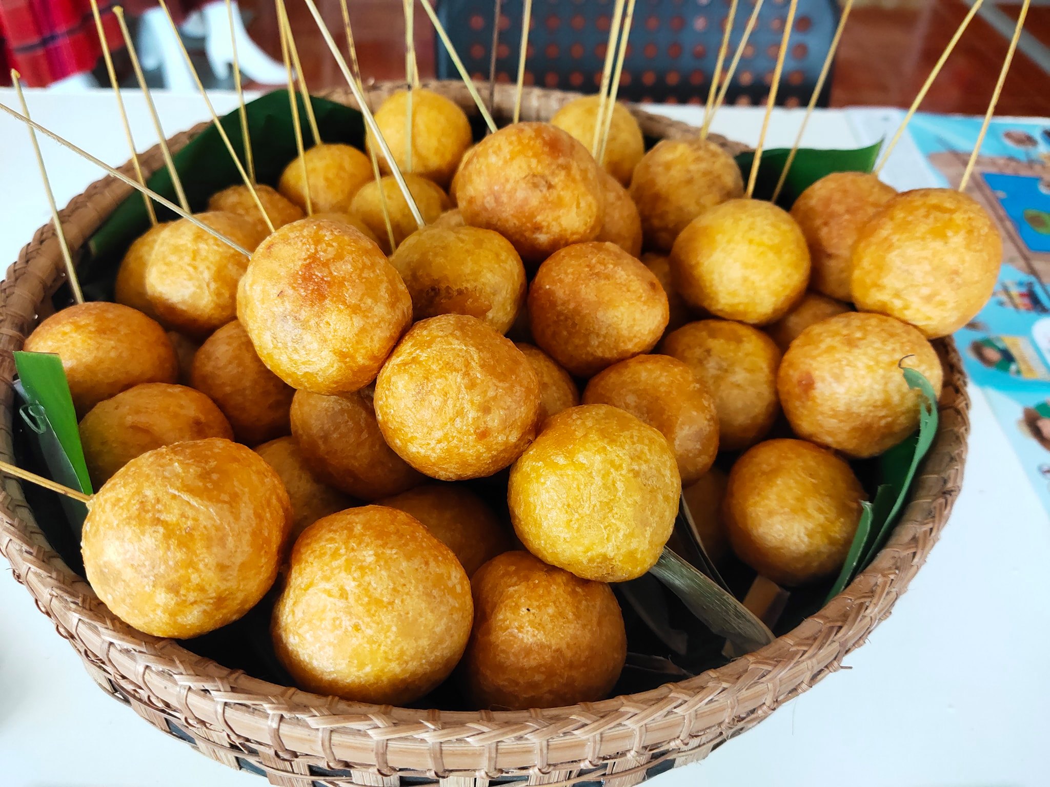 คำอธิบาย : ไปรกะซัง คือขนมโบราณซึ่งเป็นภูมิปัญญาของชาวกูย จ.ศรีสะเกษ มีส่วนผสมหลักเป็นแป้งเหนียวและมีไส้ข้างในซึ่งทำจากการนำมะพร้าวอ่อนมาผัดเข้ากับน้ำตาล หน้าตาของขนมไปรกะซังคล้ายขนมไข่เต่าหรือไข่นกกระทาแต่มีขนาดใหญกว่า และมีความเหนียวและหนากว่าเล็กน้อย |
