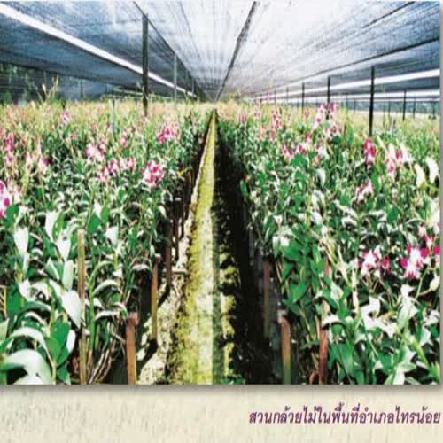 | คำอธิบาย : นอกจากการทำนาปลูกข้าว ทำให้อำเภอไทรน้อยเป็นแหล่งปลูกข้าวที่ใหญ่ที่สุดของจังหวัดนนทบุรี อำเภอไทรน้อยยังเป็นแหล่งผลิตไม้ดอกไม้ประดับแหล่งใหญ่อีกแห่งหนึ่งในจังหวัดนนทบุรีการเพาะเลี้ยงไม้ดอกไม้ประดับนั้นใช้พื้นที่การเพาะปลูกน้อยและใช้เวลาสั้น สามารถนำไม้ดอกไม้ประดับไปจำหน่ายได้ และสร้างรายได้เป็นจำนวนมากให้แก่เกษตรกรผู้ปลูกกล้วยไม้เป็นไม้ดอกที่ปลูกกันมากในอำเภอไทรน้อย โดยเฉพาะอย่างยิ่งที่ตำบลคลองขวาง เป็นแหล่งปลูกกล้วยไม้ที่ใหญ่ที่สุดในอำเภอไทรน้อย นอกจากนั้นมีเกษตรกรในตำบลอื่นที่ปลูกกล้วยไม้อีกคือ ที่ตำบลทวีวัฒนาและตำบลหนองเพรางาย เกษตรกรที่ปลูกกล้วยไม้ในอำเภอไทรน้อยได้รวมตัวเป็นกลุ่มผู้ปลูกกล้วยไม้และได้จดทะเบียนกลุ่มผู้ปลูกกล้วยไม้ในประเทศกับกรมส่งเสริมการเกษตร เมื่อวันที่ ๑๘ กุมภาพันธ์ พ.ศ. ๒๕๔๒ |