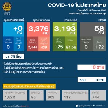 ชื่อเรื่อง : COVID-19 ในประเทศไทย ข้อมูลวันที่ 15 สิงหาคม 2563 |