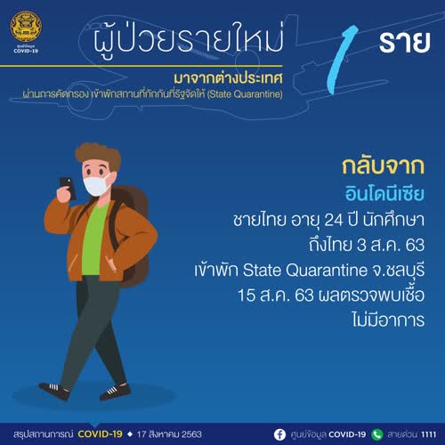 (2563). "สรุปสถานการณ์ COVID-19 วันที่ 17 สิงหาคม 2563".