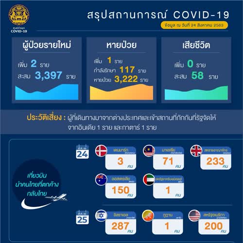 สรุปสถานการณ์ COVID-19 ข้อมูล ณ วันที่ 24 สิงหาคม 2563