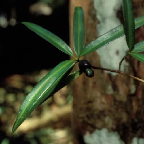 "พญาไม้ podocarpus neriifolius d.don (ใบ - ผล) - พืชเมล็ดเปลือย - วงศ์พญาไม้ PODOCARPACEAE".