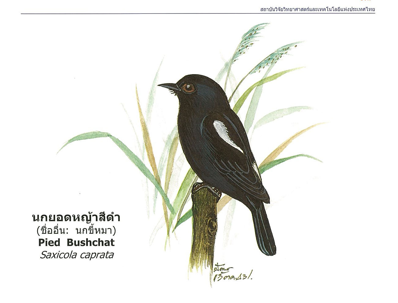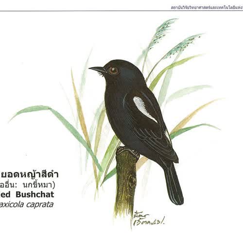 (2563). "นกยอดหญ้าสีดำ, Pied Bushchat".