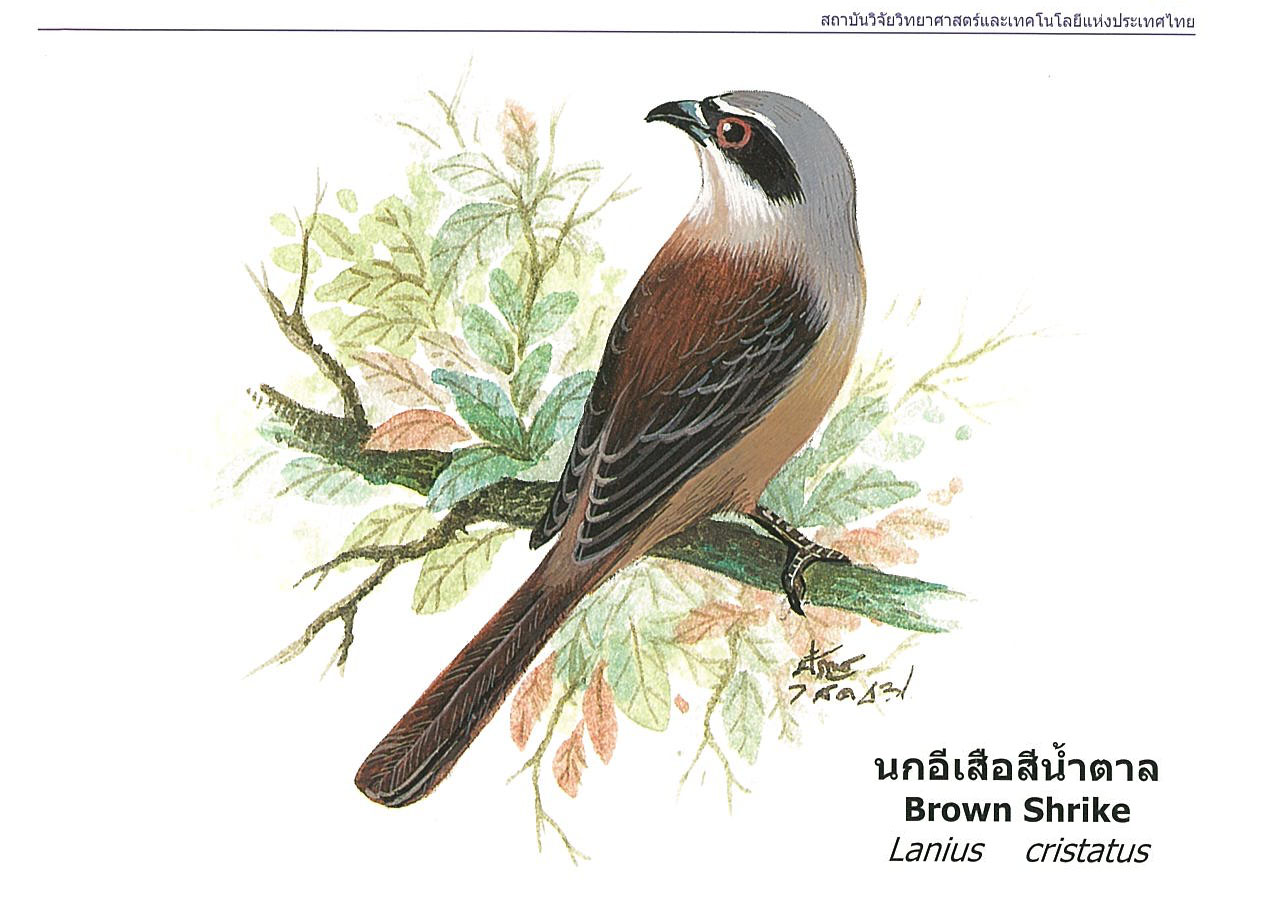 (2563). "นกอีเสือสีน้ำตาล, Brown Shrike".