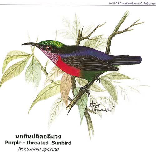 (2563). "นกกินปลีคอสีม่วง, Purple-throated Sunbird".
