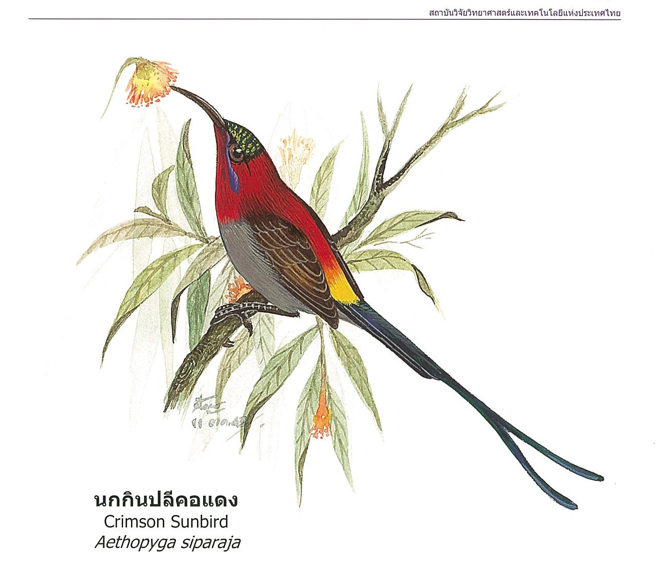 (2563). "นกกินปลีคอแดง, Crimson Sunbird".