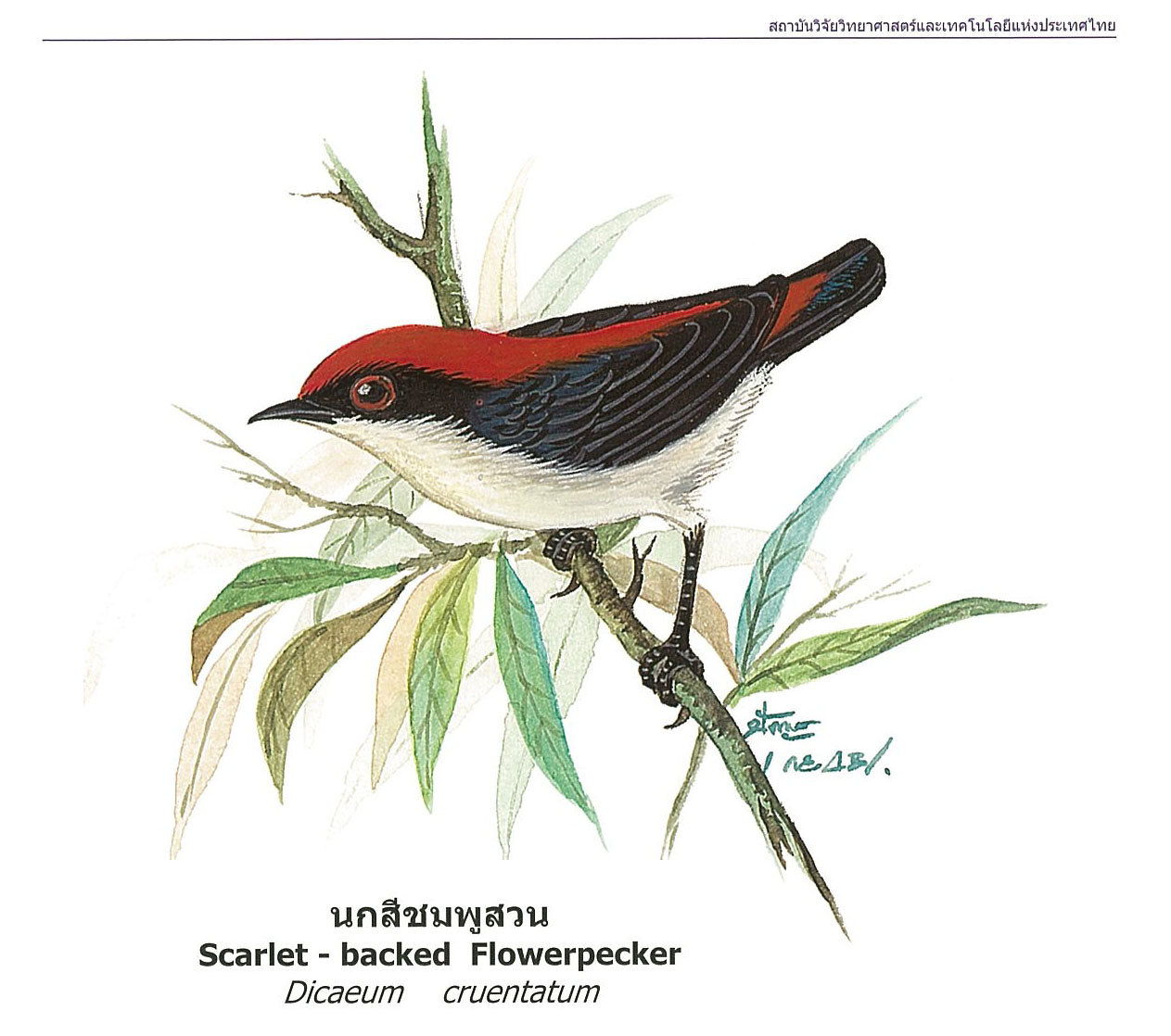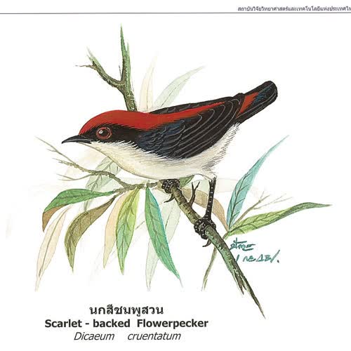 (2563). "นกสีชมพูสวน, Scarlet-backed Flowerpecker".