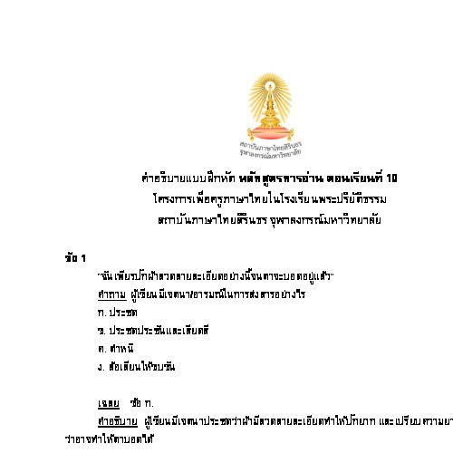 | คำอธิบาย : หลักสูตรการอ่าน สถาบันภาษาไทยสิรินธร ตอนที่ 10 อ่านอย่างตีความ (3) เจตนาในบทอ่าน - คำอธิบายแบบฝึกหัด |
