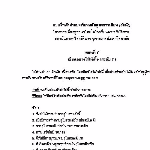 | ชื่อเรื่อง : การเขียน ตอนที่ 7 เขียนอย่างไรให้สั้น-กระชับ (1) - แบบฝึกหัด (อัตนัย) |