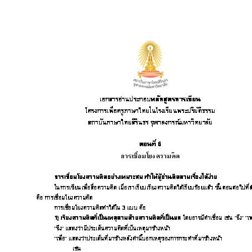| คำอธิบาย : หลักสูตรการเขียน สถาบันภาษาไทยสิรินธร ตอนที่ 6 เชื่อมโยงความคิด - เอกสารอ่านประกอบ |