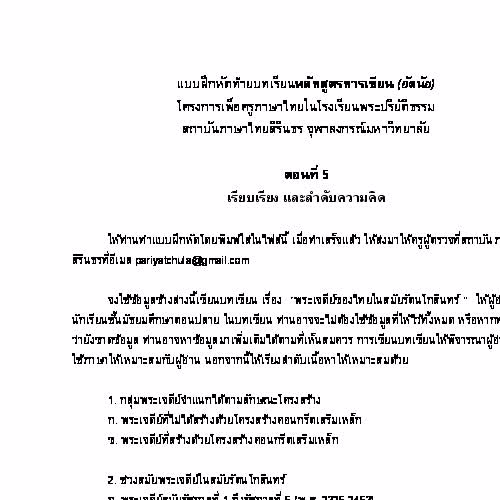 | ชื่อเรื่อง : การเขียน ตอนที่ 5 เรียบเรียง และลำดับความคิด - แบบฝึกหัด (อัตนัย) |