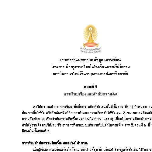 | ชื่อเรื่อง : การเขียน ตอนที่ 5 เรียบเรียง และลำดับความคิด - เอกสารอ่านประกอบ |