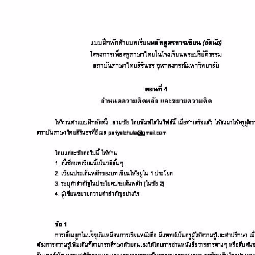 | คำอธิบาย : หลักสูตรการเขียน สถาบันภาษาไทยสิรินธร ตอนที่ 4 กำหนดความคิดหลัก และขยายความคิด - แบบฝึกหัด (อัตนัย) |