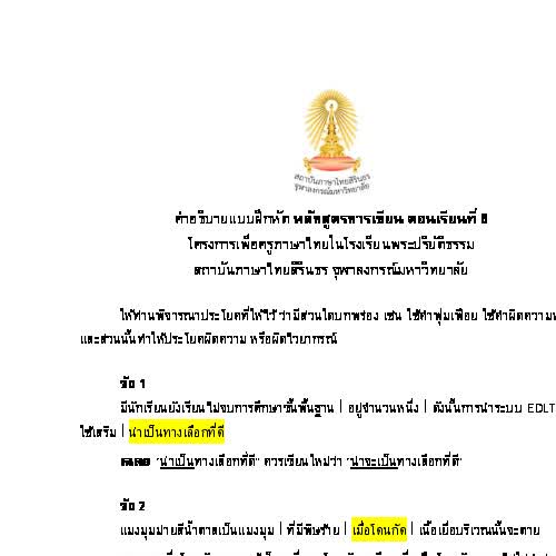 "การเขียน ตอนที่ 8 เขียนอย่างไรให้สั้น-กระชับ (2) - คำอธิบายแบบฝึกหัด".
