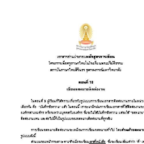 | คำอธิบาย : หลักสูตรการเขียน สถาบันภาษาไทยสิรินธร ตอนที่ 10 เขียนจดหมายติดต่องาน - เอกสารอ่านประกอบ |