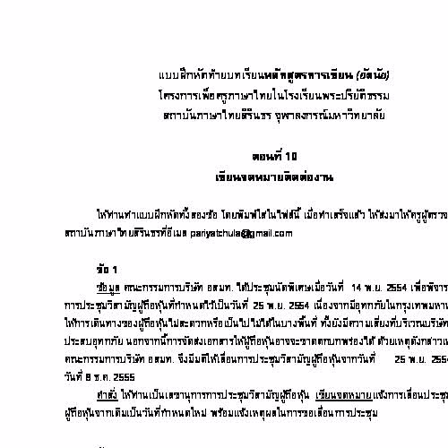 | ชื่อเรื่อง : การเขียน ตอนที่ 10 เขียนจดหมายติดต่องาน - แบบฝึกหัด (อัตนัย) |