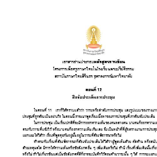 | ชื่อเรื่อง : การเขียน ตอนที่ 12 ฝึกจับประเด็นการประชุม - เอกสารอ่านประกอบ |