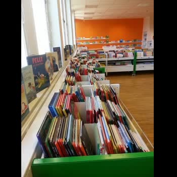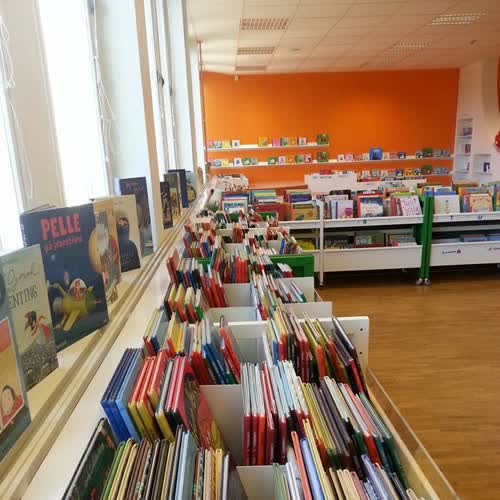 | คำอธิบาย : มุมหนังสือสำหรับเด็กเล็ก ห้องสมุดประชาชนเมืองโบโรส ประเทศสวีเดน |