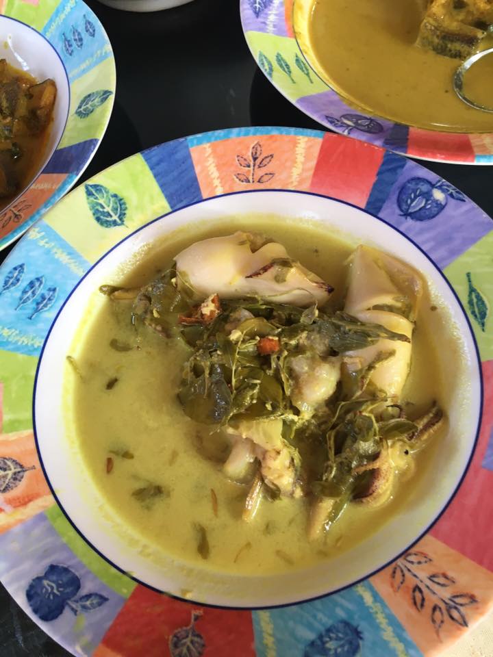 "ต้มกะทิปลาหมึกยอดมะขามอ่อน".