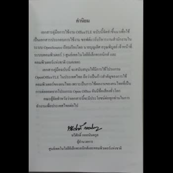 ภาพหน้าคำนิยมของหนังสือ OfficeTLE ฉบับพกพา ได้รับใบอนุญาตภายใต้ ให้เผยแพร่-ดัดแปลง-โดยต้องระบุที่มา 3.0 Thailand.