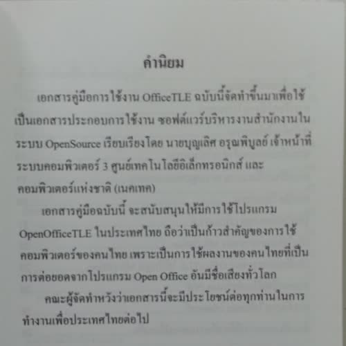 | คำสำคัญ : OfficeTLE ฉบับพกพา, Open Source Software, ชุดโปรแกรมสำนักงาน, ภาพหน้าคำนิยมของหนังสือ, OSS |
