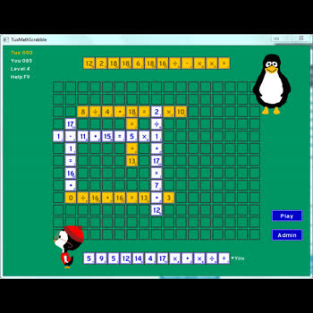 Tux Math Scrabble เกมคณิตศาสตร์น่าเล่น ได้รับใบอนุญาตภายใต้ ให้เผยแพร่-ดัดแปลง-โดยต้องระบุที่มา 3.0 Thailand.