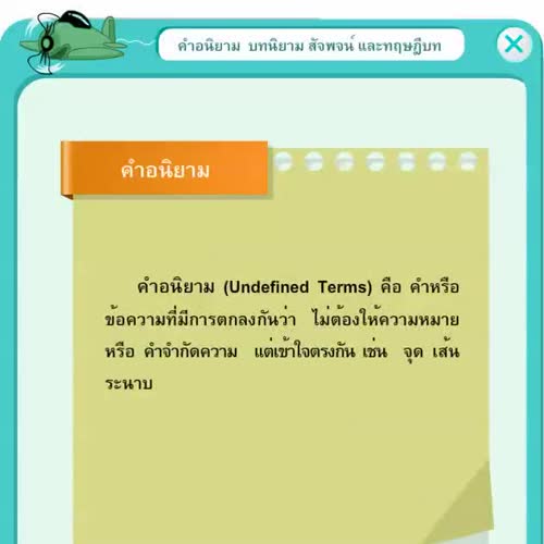 | คำอธิบาย : คำอนิยาม บทนิยาม สัจพจน์และทฤษฎีบท |