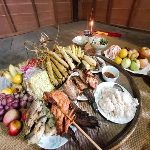 | คำอธิบาย : เครื่องเซ่นไหว้และบวงสรวงผีบรรพบุรุษ ปู่ย่า ตายายและพ่อแม่ของชุนชนชาวกูย บ้านกู่ ต.กู่ อ.ปรางค์กู่ จ.ศรีสะเกษ ในงานประเพณีบุญเดือน 10 ชาวกูย |