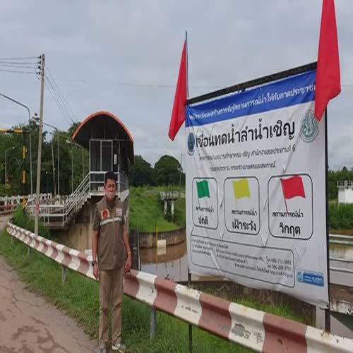 | คำอธิบาย : จ่าสิบเอกมนตรี สุวรรณสิงห์ หัวหน้าสำนักปลัดเทศบาลเมืองชุมแพ ได้รับมอบหมายจาก นายสมเกียรติ ดีบุญมี ณ ชุมแพ นายกเทศมนตรีเมืองชุมแพ เฝ้าสังเกตการณ์ปริมาณน้ำที่ไหลมารวมกันที่เขื่อนลำน้ำเชิญ เพื่อเตรียมการรับมือกับปริมาณน้ำที่จะไหลเข้าสู่เขตเทศบาลเมืองชุมแพ |