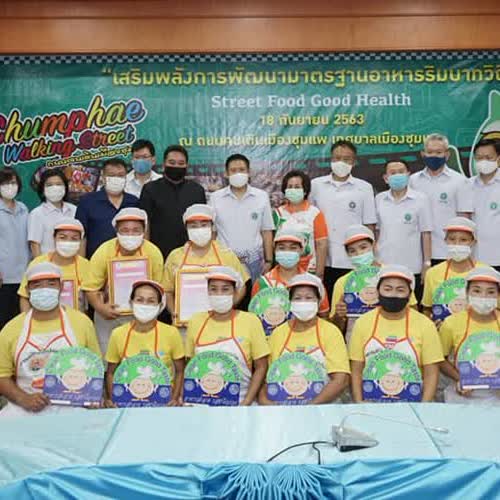 | คำสำคัญ : กระทรวงสาธารณสุข, สุขอนามัย, Street Food Good Health, เทศบาลเมืองชุมแพ, ชุมแพ, การพัฒนามาตรฐานอาหารริมบาทวิถี, ถนนคนเดินเมืองชุมแพ, การสุขาภิบาลอาหาร |