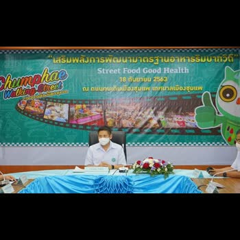| คำสำคัญ : กระทรวงสาธารณสุข, สุขอนามัย, ถนนคนเดินเมืองชุมแพ, การพัฒนามาตรฐานอาหารริมบาทวิถี, การสุขาภิบาลอาหาร, เทศบาลเมืองชุมแพ, ชุมแพ, Street Food Good Health |