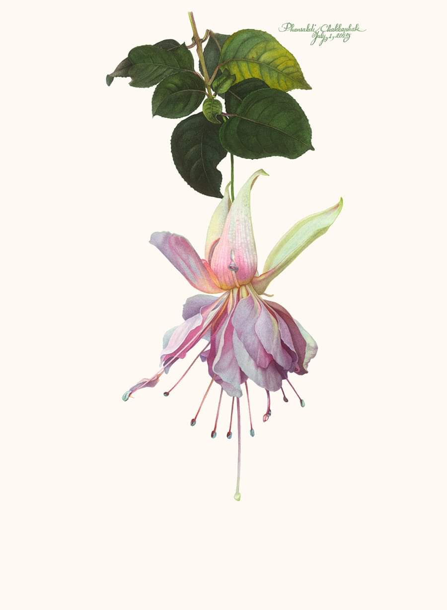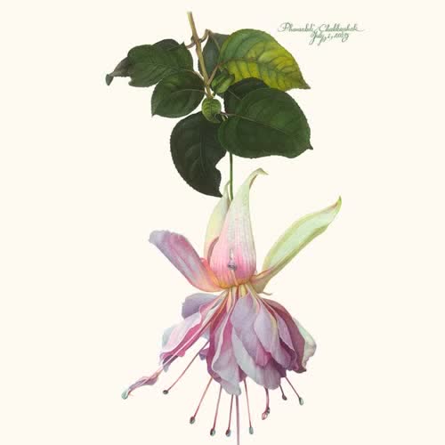 | คำอธิบาย : ภาพเขียนที่ได้แสดงในนิทรรศการ FLOWERSDelight in the detail ที่ The Shirley Sherwood Gallery of Botanical Art ที่ Royal Gardens Kew, London, UK โดยท่านอาจารย์พันธุ์ศักดิ์ จักกะพาท ... ดอก Fuchsia |