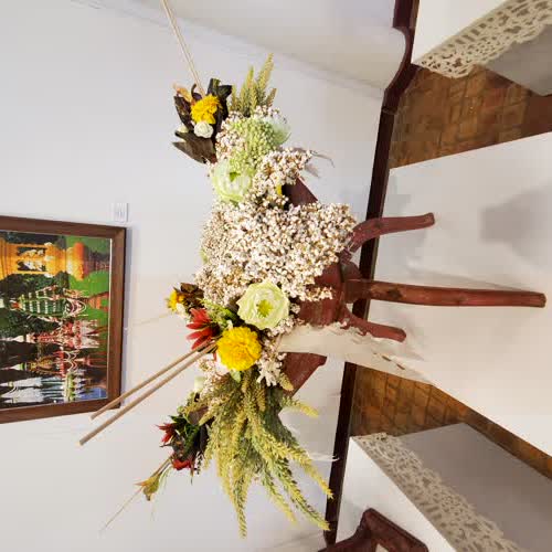 | คำอธิบาย : พานพุ่มดอกไม้ทรงสูง งานไม้ศิลปะล้านนา มีความงดงามและเป็นเอกลักษณ์ ใช้ประดับตกแต่งถวายเป็นพุทธบูชา หรือจัดการแสดงต่าง ๆ |