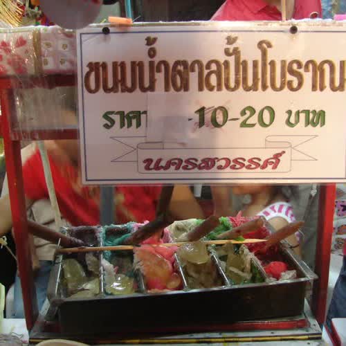 | คำสำคัญ : ขนมโบราณ, งานวัด, ขนมน้ำตาล, น้ำตาลปั้น |