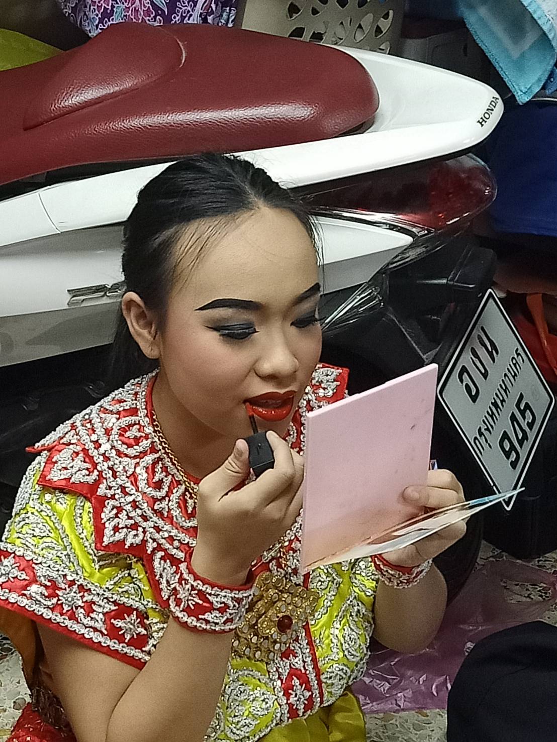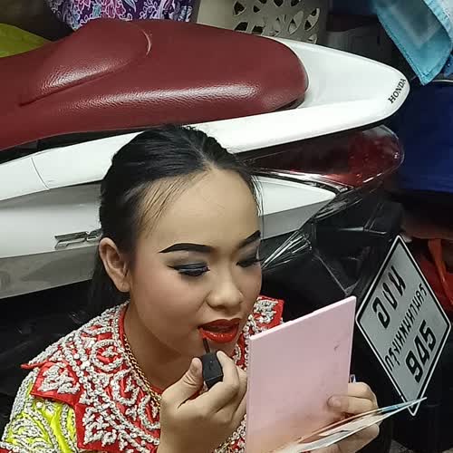 | คำอธิบาย : นางรำทำการแต่งตัวเพื่อเตรียมไปแสดงรำแก้บน |