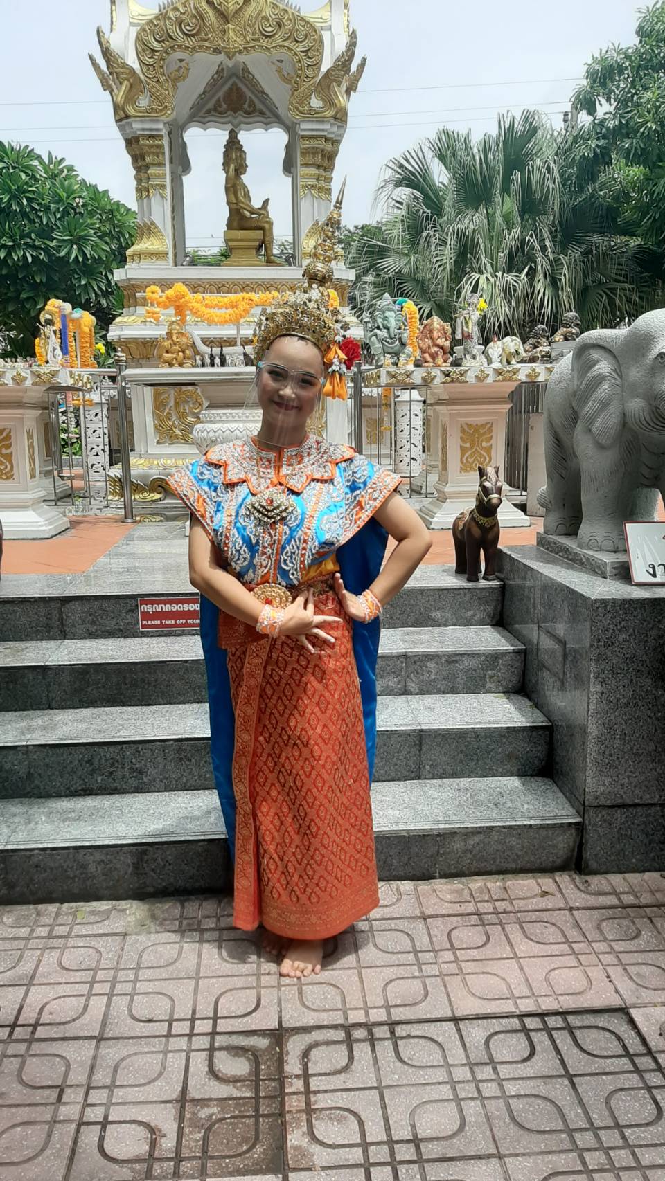 | คำอธิบาย : นางรำในยุคที่มีการระบาดของโรค โควิด 19 โดยจะมีการใส่หน้ากากผ้า และอุปกรณ์ป้องกันใบหน้า ตามนโยบายของรัฐบาล |