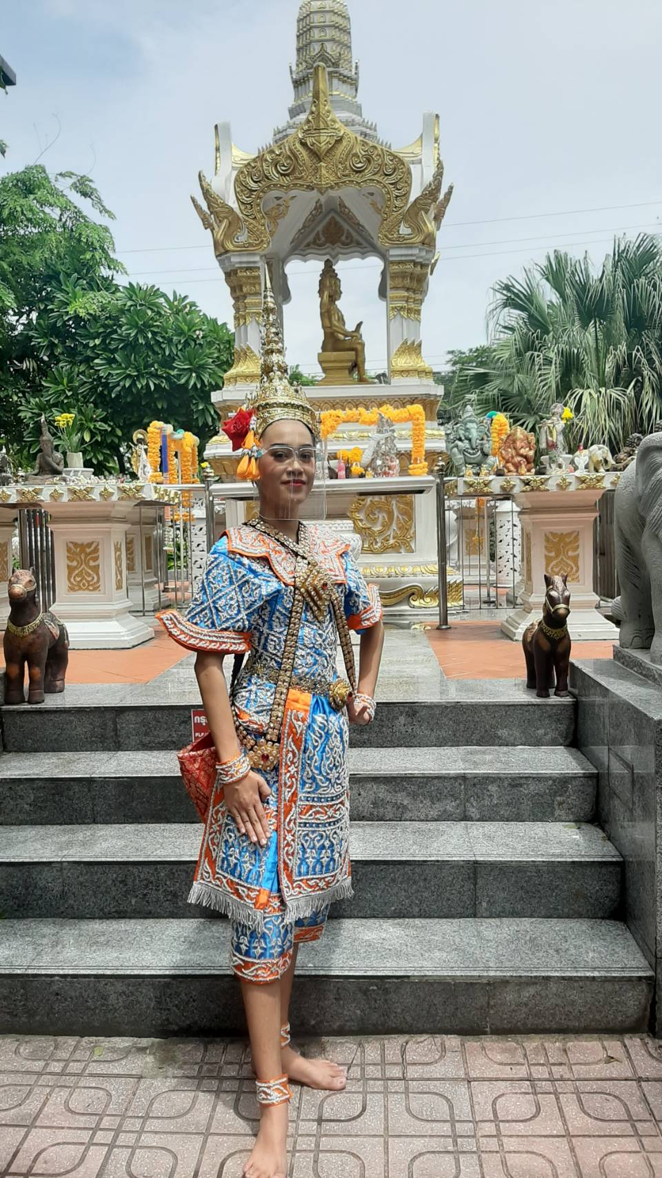 | คำอธิบาย : นางรำในยุคที่มีการระบาดของโรค โควิด 19 โดยจะมีการใส่หน้ากากผ้า และอุปกรณ์ป้องกันใบหน้า ตามนโยบายของรัฐบาล |