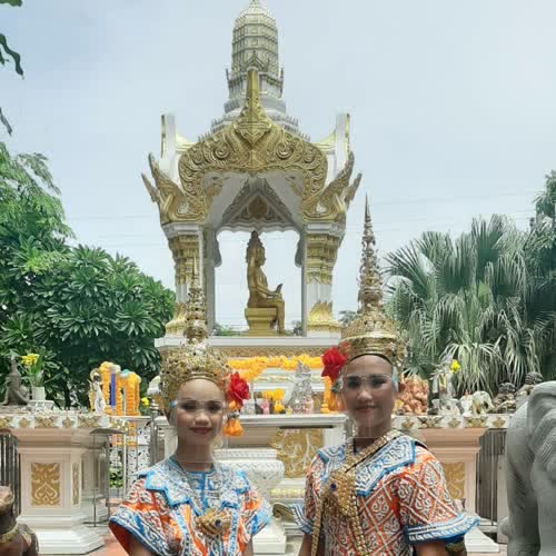 | คำอธิบาย : นางรำในยุคที่มีการระบาดของโรค โควิด 19 โดยจะมีการใส่หน้ากากผ้า และอุปกรณ์ป้องกันใบหน้า ตามนโยบายของรัฐบาล |