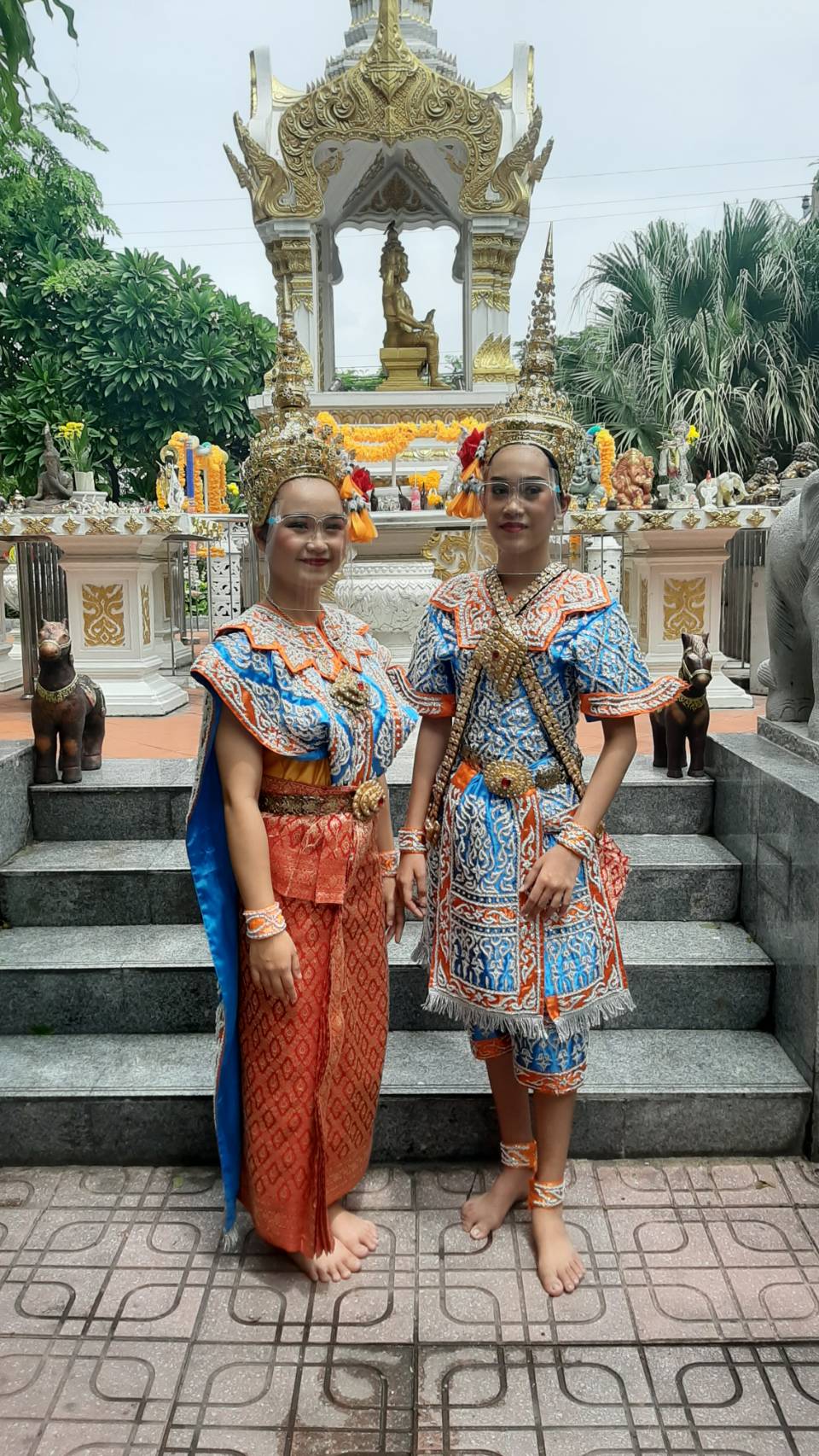 | คำอธิบาย : นางรำในยุคที่มีการระบาดของโรค โควิด 19 โดยจะมีการใส่หน้ากากผ้า และอุปกรณ์ป้องกันใบหน้า ตามนโยบายของรัฐบาล |