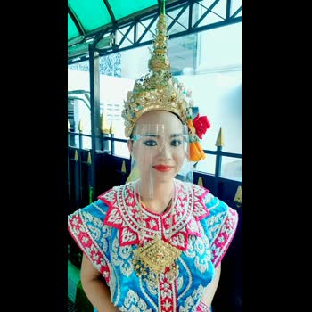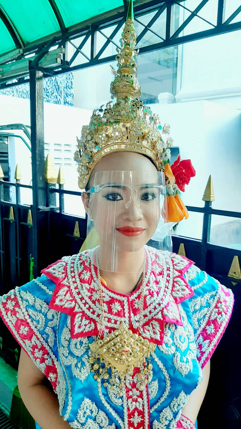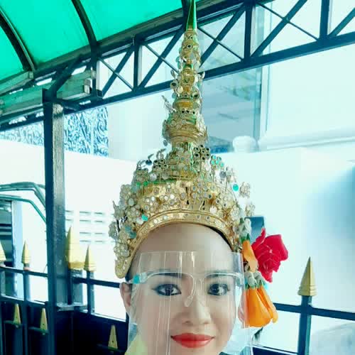 | คำอธิบาย : นางรำในยุคที่มีการระบาดของโรค โควิด 19 โดยจะมีการใส่หน้ากากผ้า และอุปกรณ์ป้องกันใบหน้า ตามนโยบายของรัฐบาล |