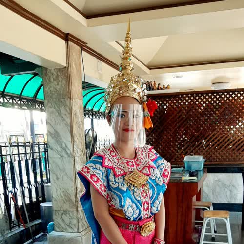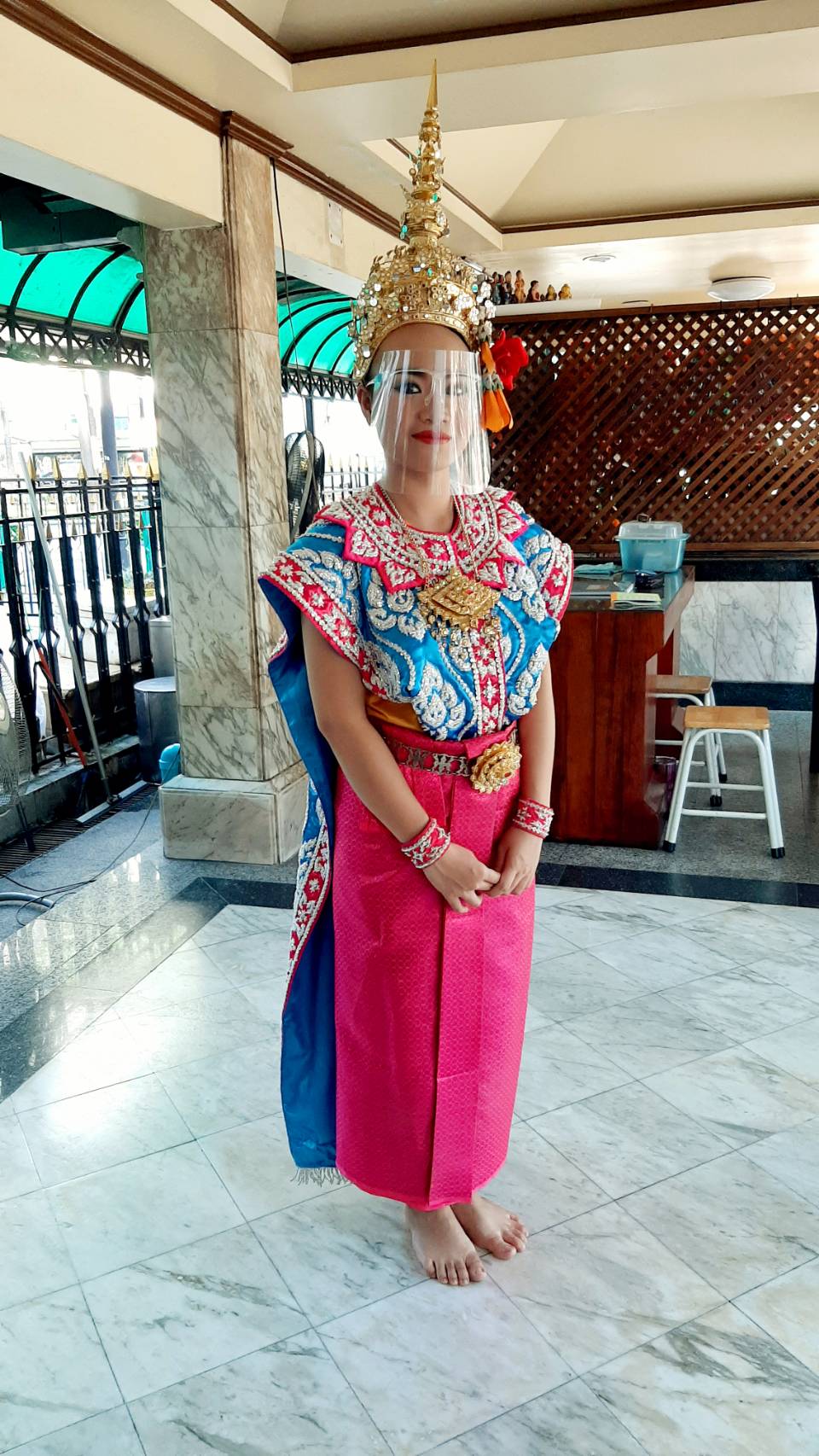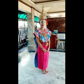 | คำอธิบาย : นางรำในยุคที่มีการระบาดของโรค โควิด 19 โดยจะมีการใส่หน้ากากผ้า และอุปกรณ์ป้องกันใบหน้า ตามนโยบายของรัฐบาล |